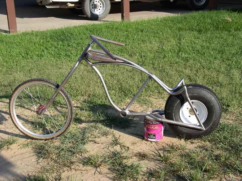 front forks stretched 20" rigid rear end with frame supported seat