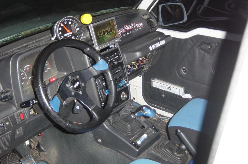 TV, DVD and PS2, Momo shifter, Momo stearing wheel, NOS racing seat covers and NOS floor mats. Neons under the dash and across the stereo box. I had power windows added. Also got 5 inch Auto Meter racing tach with shift light.