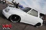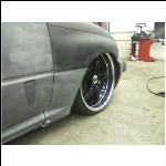 White primer sealer, shaved: pissers, door handles, antenna, mirrors,plate box, spoiler, marker lights, gas door, rear bumper body line, candy red on the tails.