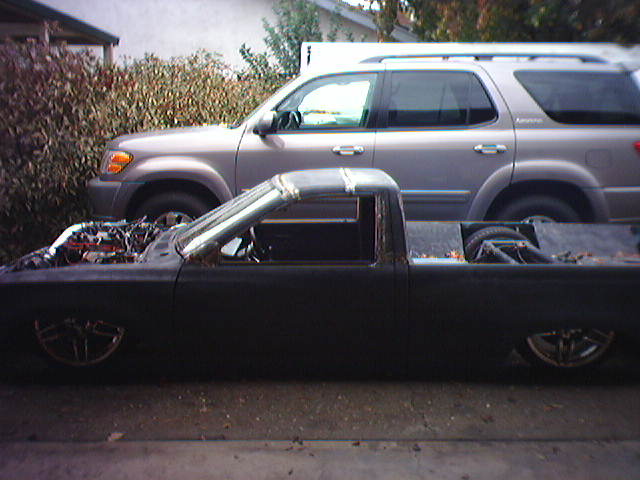 2x2 frame under cab. bagged. frame is about an inch and a half off the ground. its set up to lay. you do the math. actually rides pretty nice.