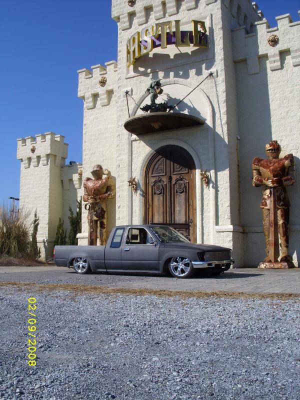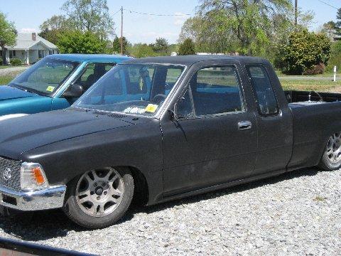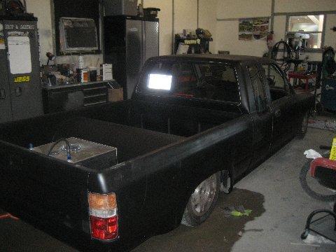 Nissan Xterra tails. Fiberglassed center console with place for 1 12 in the Ext Cab. Fiberglassed Dash with Mazda6 or 06 F150 Air Vents. B.A.D. Steering Wheel. Convert to Power locks. Suicide Doors, rebuilt 22RE turbo, retub for 22s =)