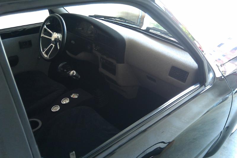 Black Carpet, Black and Grey Tweed Interior, Billet Steering Wheel, Billet Rear View Mirror, Billet Window Cranks, Billet Shift Knob, Working Wipers, Interior Lights and Gauges and Signals (an accomplishment in itself..haha)