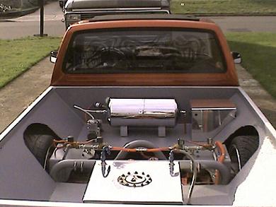 4 runner front end, cowl hood, shaved antenna, suicide doors, sliding rag top, shaved door handles, shaved and molded in tailgate, l.e.d. tail lights, and a custom license plate box