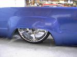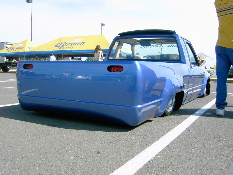 3"Bodydrop. 88 4wd chrome grille. 4wd Fenders. 97 4wd Tocoma bumper and valance. Clear corners. Stock hood,no supports cut. No motor drop. Shaved hood squirter, wipercowl, antenna, gas door, doorhandles, locks, taillights, body seams, rear corner bodyline. Rear Combo Skin.Graft 4wd front fenders to bedsides. French LED trailer taillight. Popup license box{air}. 40x30 ragtop. Harley billet mirror with blinker. MAS Racing Products 14 gallon spun aluminum fuel cell.