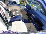 Molded air gauge pods in dash,painted. Custom fiberglass centerconsole. Custom kickpanel. Billet door handles, armrest, window cranks, ragtop crank. Billet Specialties steering wheel. Tan Tweed. AutoMeter gauges.