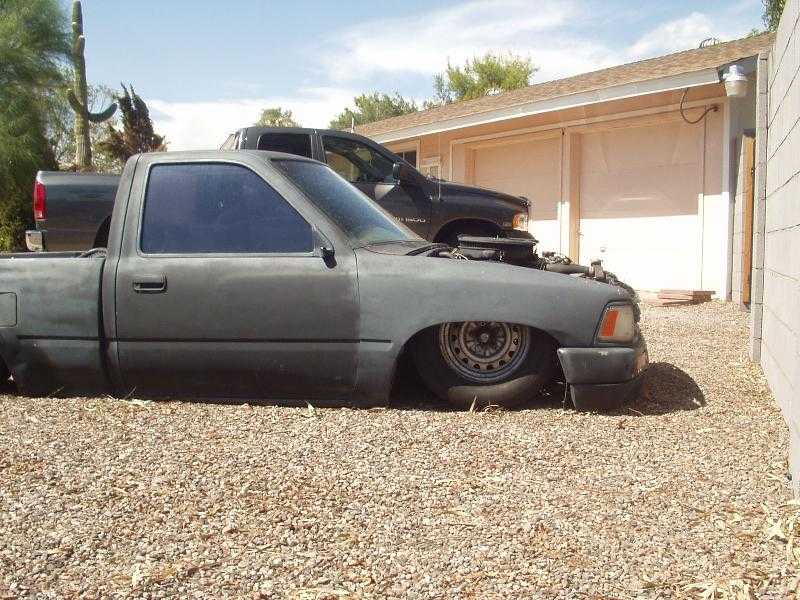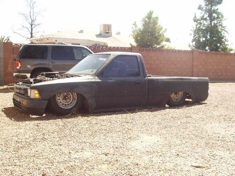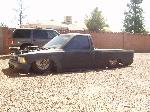 shaved tailgate handle, all bent and tweaked out bed from draggin, body dropped 4 1/2 inches, needs body work, needs new fenders