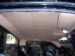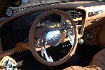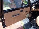 Stock bench seat reupholstered with removed headrests, carpet replaced and sound deadened, door panels reupholstered with fiberglass speaker pods, dash upholstered, BAD Carnage steering wheel with matching interior wrap, custom cantilevered clutch master cylinder beneath dash, LC Engineering shift knob and short shift kit, floorpan modified for driveshaft clearance, firewall tubbed for wheel clearance, custom molded fiberglass kickpanels, headliner and sunvisors upholstered to match, custom fiberglass rear speaker pods, Billet Specialties window cranks, grab handle, and courtesy lights