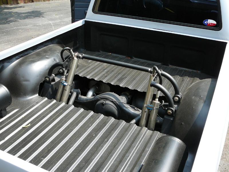 Bagged, 4 link,front fender wells, rear fender wells, off road shocks with reservoirs, SMC valves, 2 Thomas compressors. Still need to move up front x member.