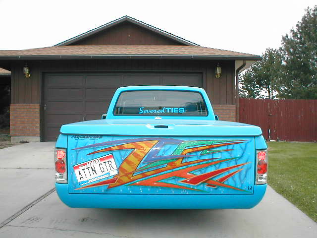 shaved:antenna, hood squirters, rock guards, cowl, 2wd bumper moulded w a 4wd valance and a trenz billet insert...trenz billet grille, shaved door handles, tailgate handle relocated, smoothed out tailgate, sir michaels roll pan..recessed license plate. 4wd fenders, clear corners, bumpers and clear tails. 18 shades of ppg paint....(cool ice blue base w grappix)