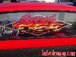 Finish bodywork and paint performed by Ed Warren (Fast Eddie) of FED Customs in Yucca Valley, Ca. Ed painted the truck to match my logo with Spies Hecker Permacon 2002 Audi Lazer-Rot Red and midnight Black two-tone with a metallic silver flame outlined in bright yellow that divides the red and black. Dupont cleared, color sanded and buffed to perfection.