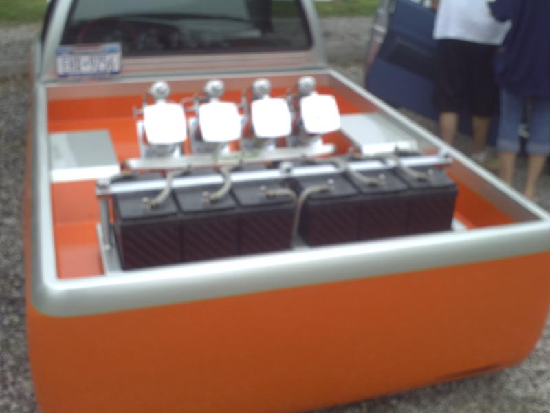 4 Pump Prohopper setup, 8" cylinders, 3" Bodydrop, Grant customs bumper, FBI full skin in back with LED tails