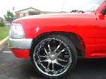 Toxic shocks all the way around 2 inch drop spindles in the front with torsion bars cranked down for a 4 inch drop in the front 4 inch blocks in the back