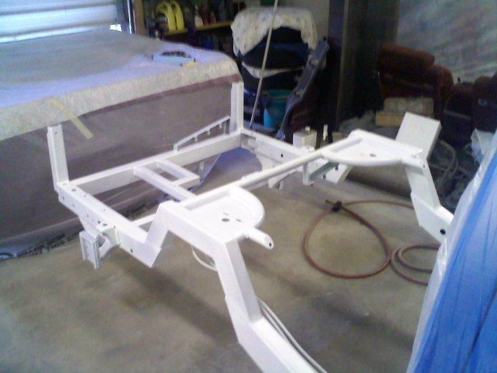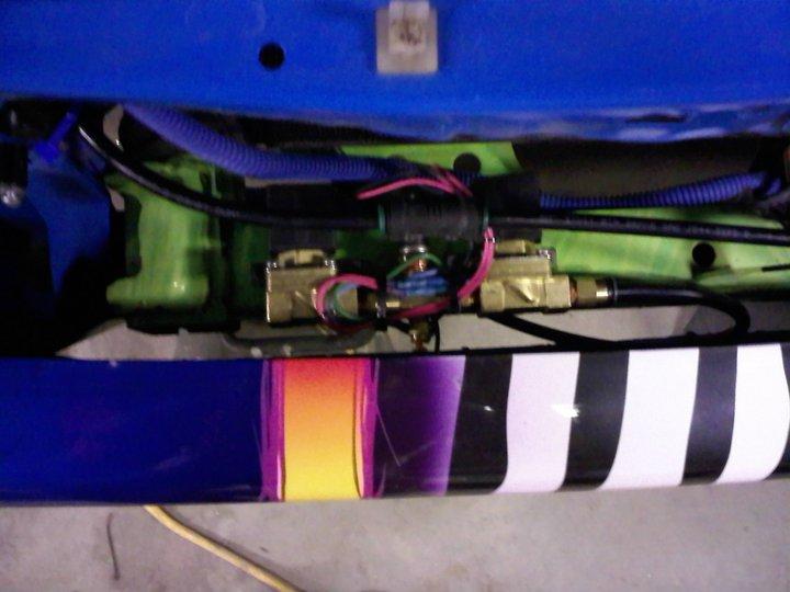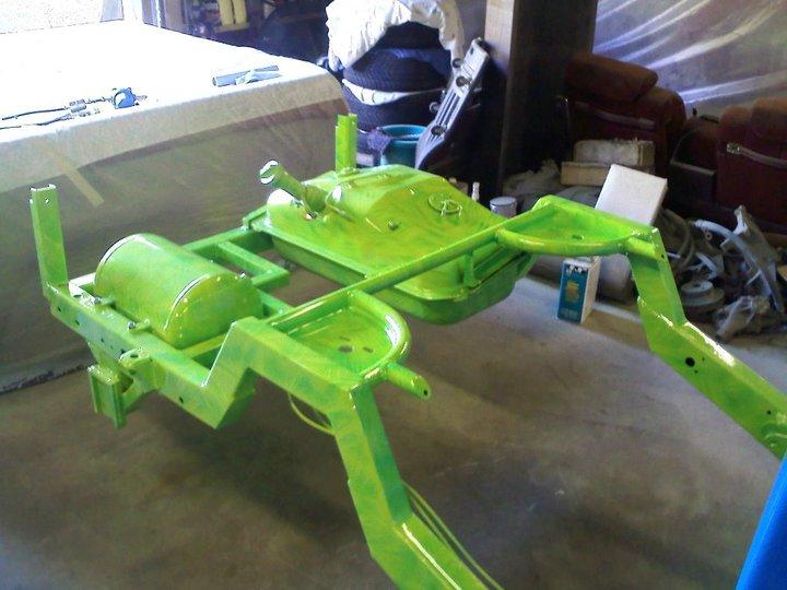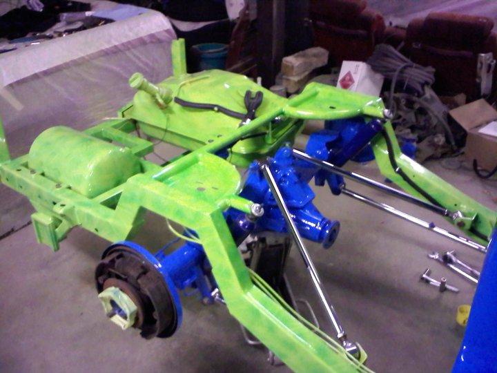 full air ride with chrome upper control arms, chrome 4-link, 1/4" SMC's with 3/8" line...Frame is fully painted and air brushed by Dustin as well