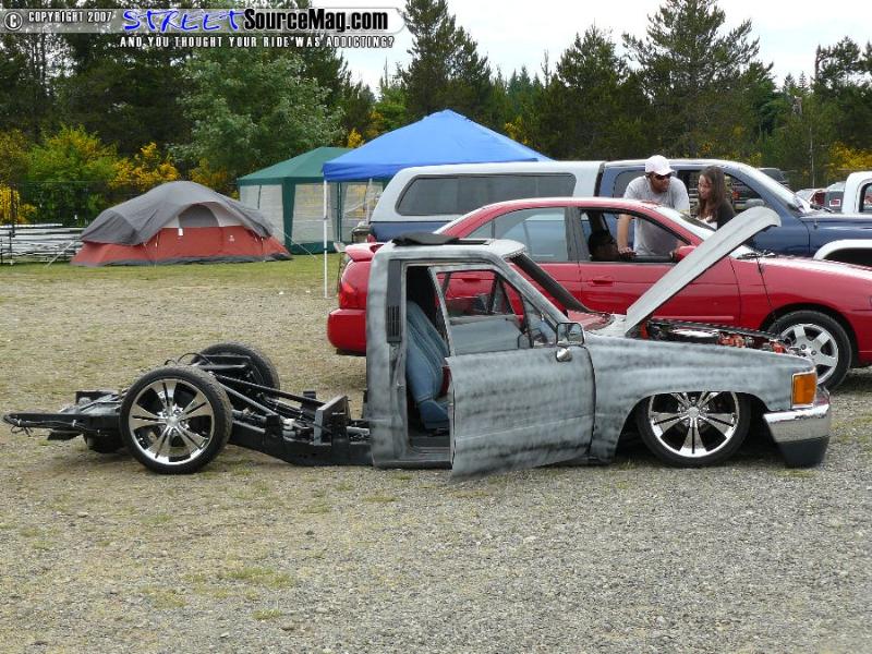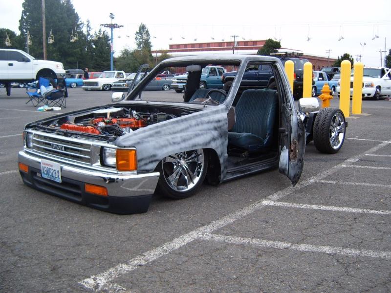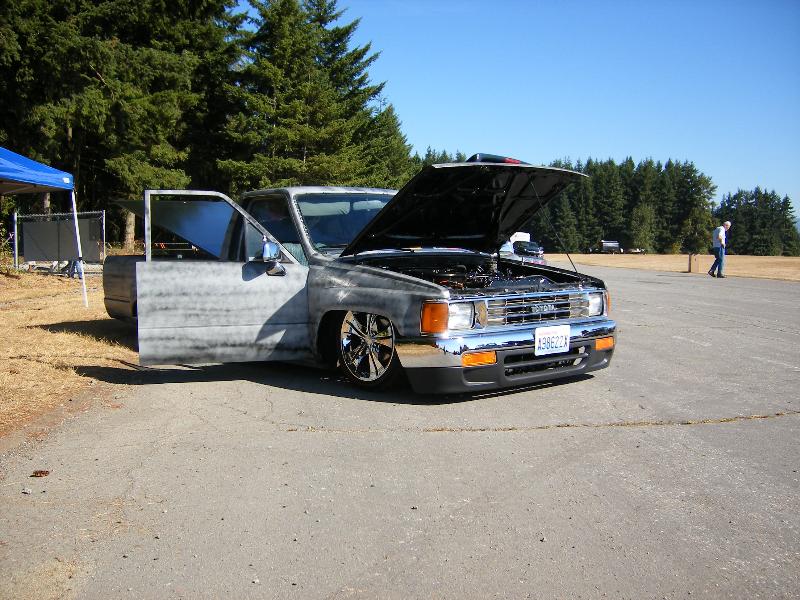 2& 3/4" traditional bd past pinch, suicide driver door, shaved everything, smooth back wall, american loooooongbed (came with japanese bed), 4x4 fenders, 95 4runner bumper, small-ass-pathetic rag top, smooth ass end w/led's STOCK HOOD!!!