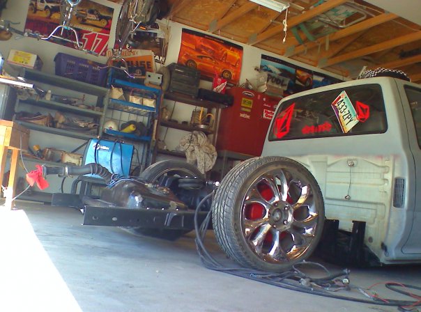 Bags over axel, moved gas tank, triangulated 4 link. . .