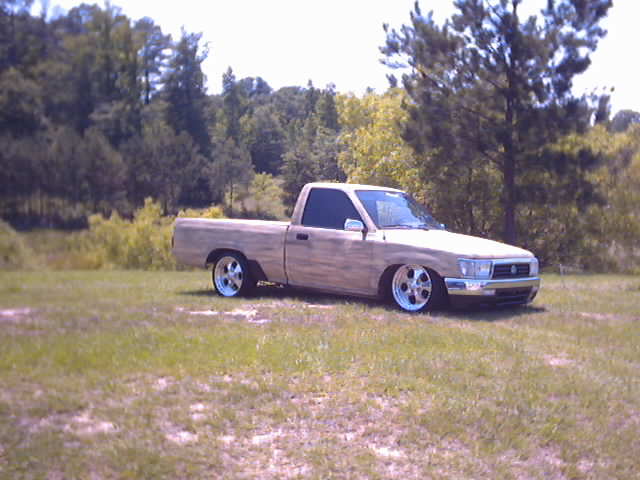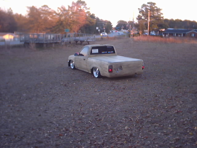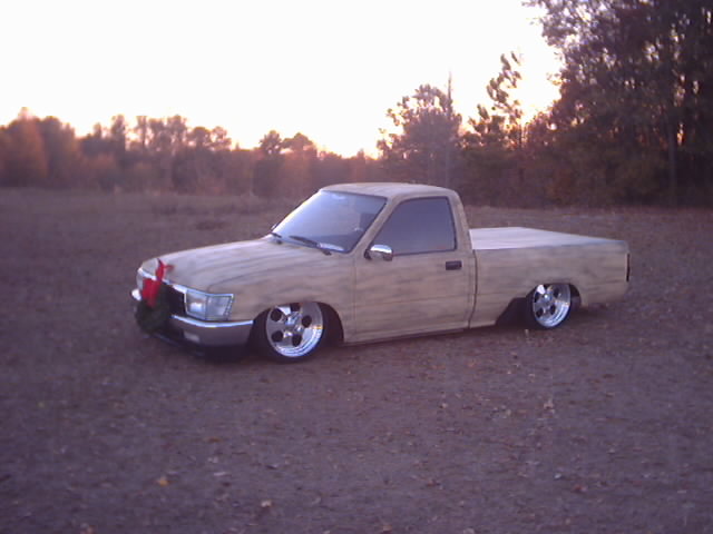 full 4runner conversion..frenched power antennae..4runner side mirrors..shaved and relocated fuel filler door and nozzle...bed tubbed with canted l plate box and frenched exhaust....custom hand made bed cover and taililights ...primer....K-200 for ever shiny sucks