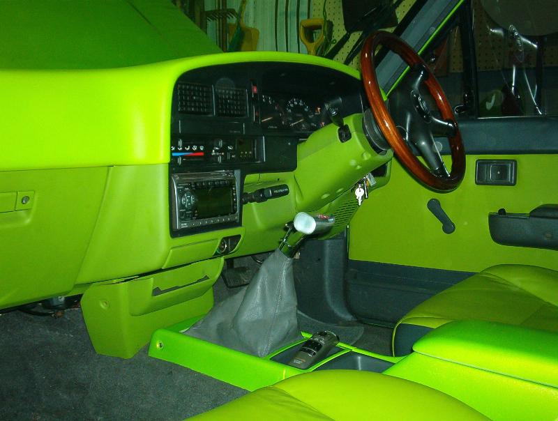 Custom green Leather with Skyline seats, painted dash, B+M mega shifter....etc,...