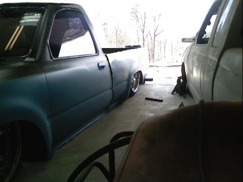 Black and blue right now paint coming soon. Shaved tailgate and roll pan, and antena. 4 runner front end.