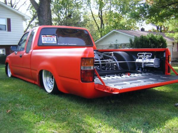 shaved fuel door, ant., molded roll pan, 4runner front end swap, tubbed in rear