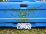 flat blue with green flames