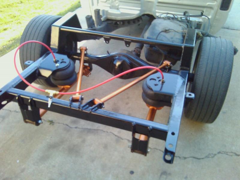 C-notch, Can-Do reverse 4-link set up, air bags, 2 pumps. All done by Clint Bray