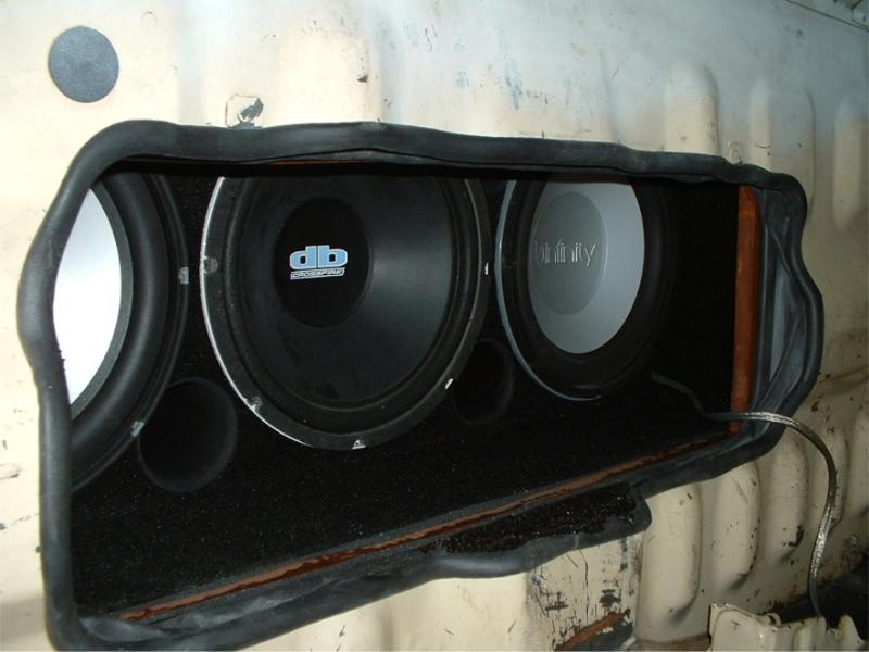3 12 inch infinity perfect subs infinity kappa mids pioneer premier deck, DEI viper 1200.d (1500 watt)amp(2003line...got this amp before the price list came out!!! hook ups baby! i guess that makes me a first to have it) and a zapco 350 amp(400watts)(also a 2003 line that came out last month)...i had 1800 watts and just upgraded to 2000watts. I am hitting about 158dec.(db) with zero distortion!!! no mudd..all sound quality! ive now got a ported cut cab box designed for 3 12"subs