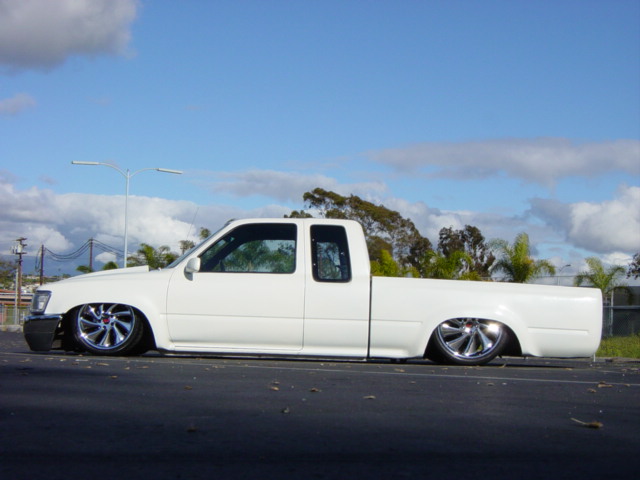 Bagged front and rear. Have had the same set up since 98 and have never had a problem with it. 2.5 inch Body-drop.