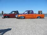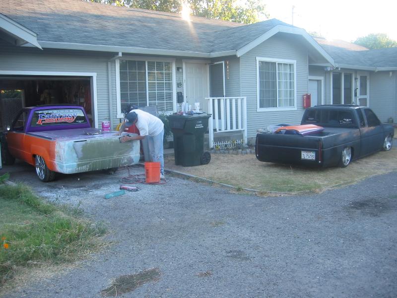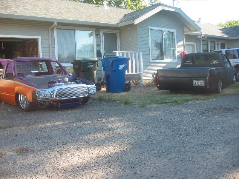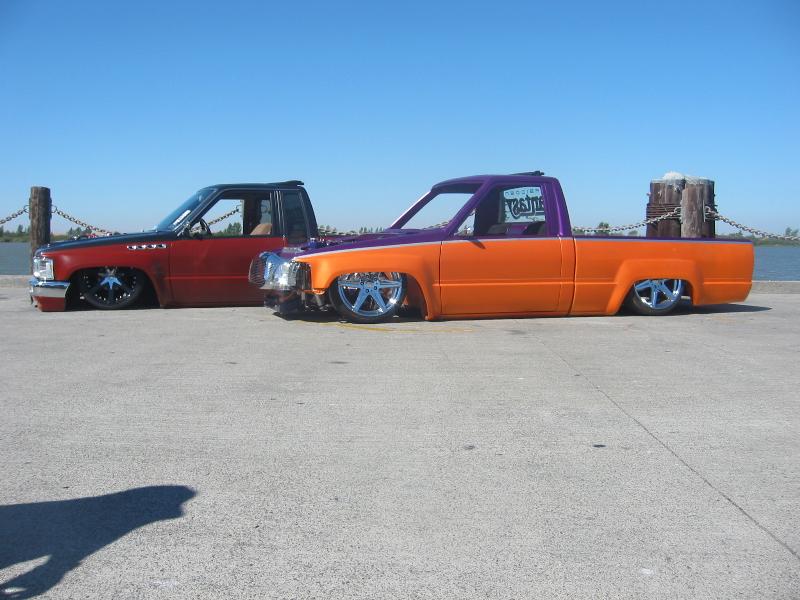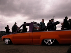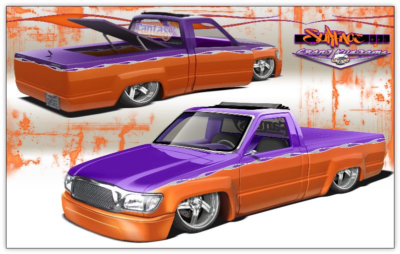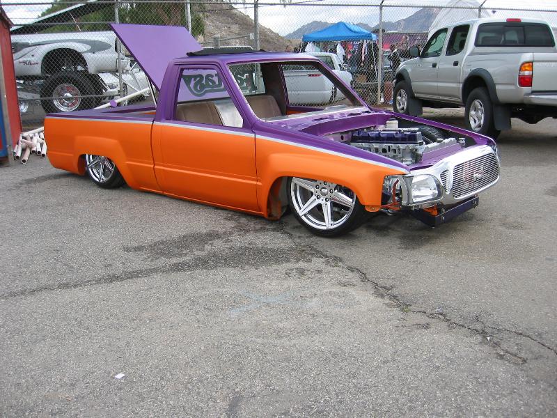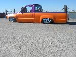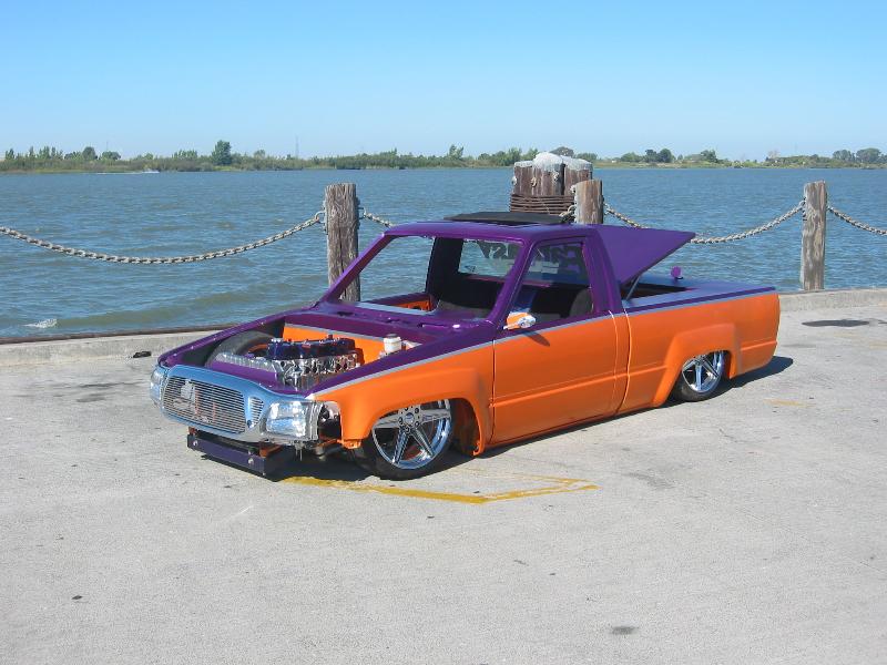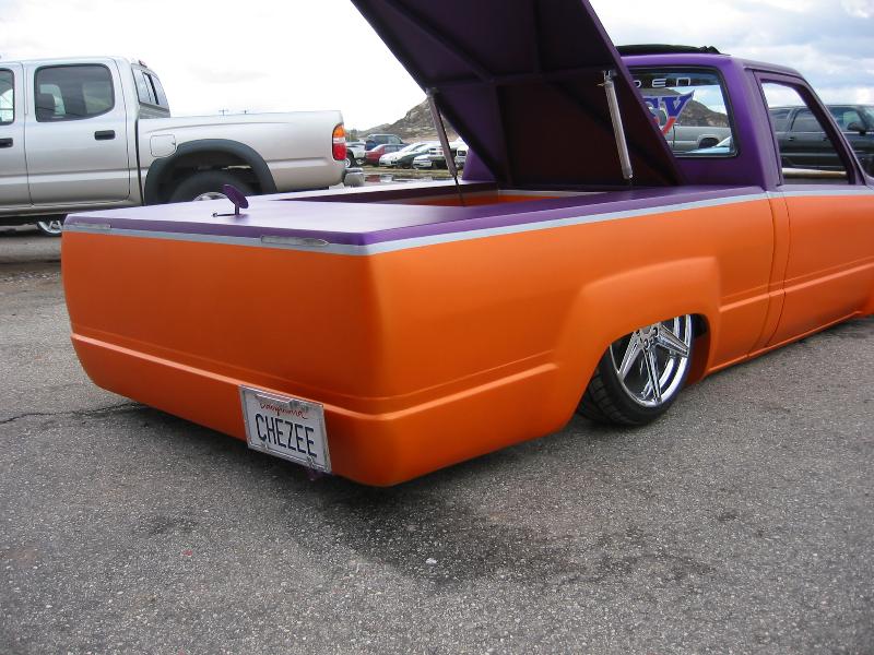 shaved door handles, gas door, taillights,cab side vents, antena ext. ragtop, half capped bed with aluminum tounel cover on air cylinders, custom coresupport to hold the 2003 taco front end, just shaved the firewall and frenched the booster into it 2 inches, capped rear inner fenders, haggon gas door on top of bed, hi- tech leds in top bodyline and trimmed down to look like tear drops, shaved mirrors with a harley davidson mirror, all 4x4 sheetmetal