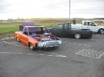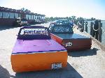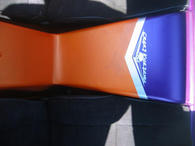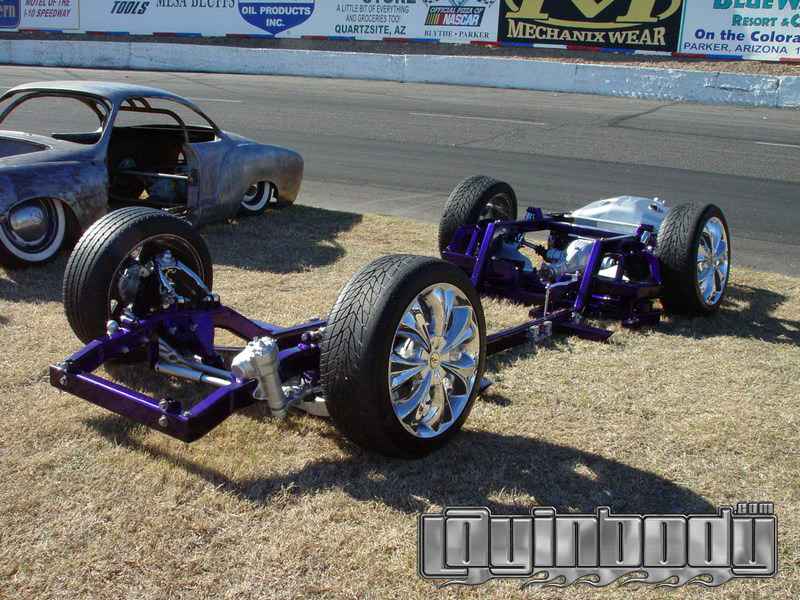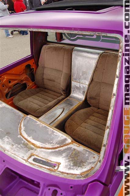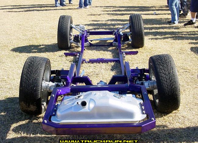 custom frame powdercoated kandy purple, 2000 vw silver parts and chrome everything else, used all stainless hardware, 300 zx rear end, speedway front tubular controlarms, slam es bags all 4, 8 smc valves,two viar 450 comps, 9 gallon chrome tank, frame built by bob grant and front of frmae done by me
