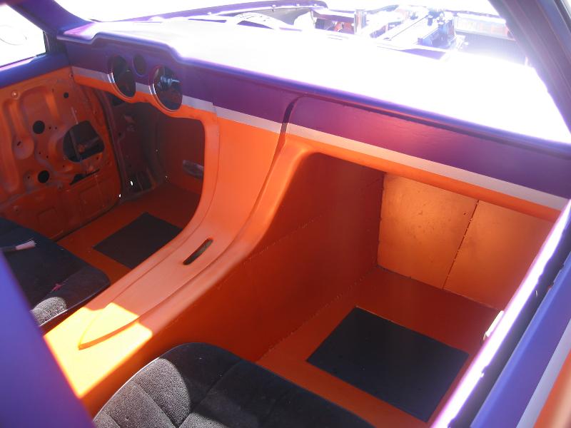 all metal interior with karmaghia gauge cluster, hand made floor going to be painted with leather frenched padding in the floor. everything includding the roof will be painted and the dash flows into the center counsel and back around the seats into the door and back into the dash