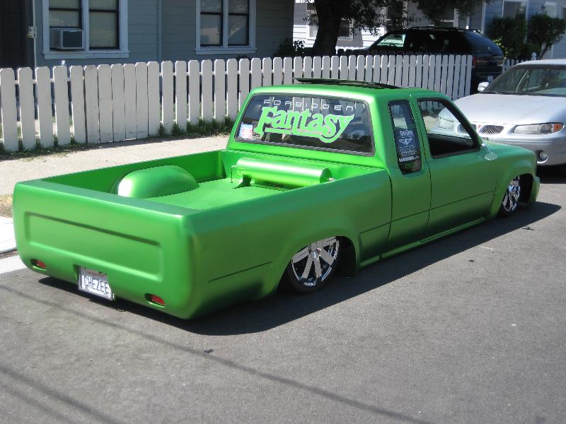 fully shaved, 97 taco front end, i built the bumper based off a grant one, made all my own grills, capped all inner fenders, sun roof, arlen ness mirrors, harley gas cap, 47 chevy LEDS, one off air tank made by me , fully shetted bed shaved cowl, much more