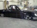slams in the front firestone rear custom upper and lower a arms. 3 link rear bags on the bars shocks all the way around. complete custom frame from firewall back stockflored,