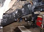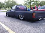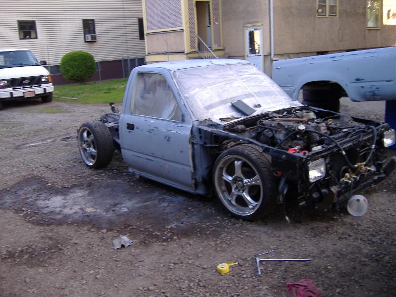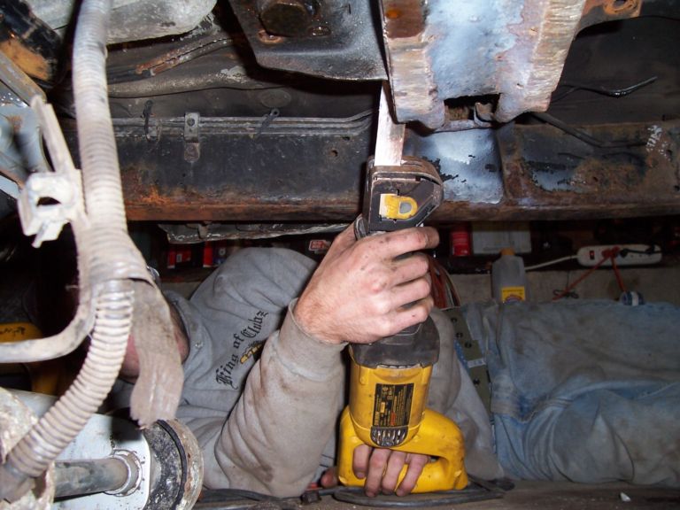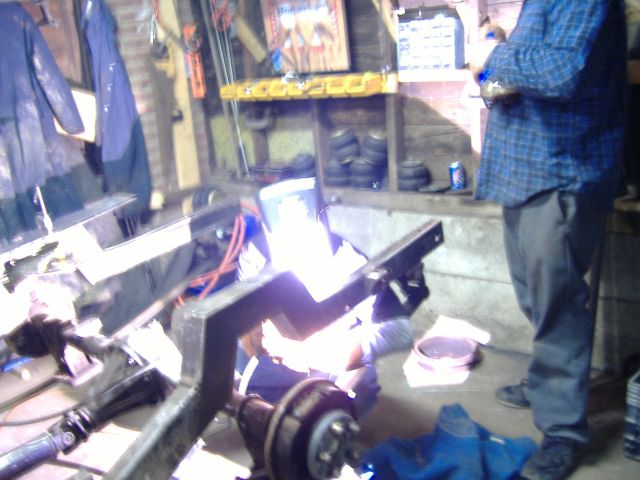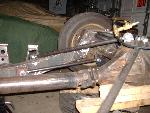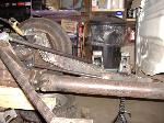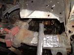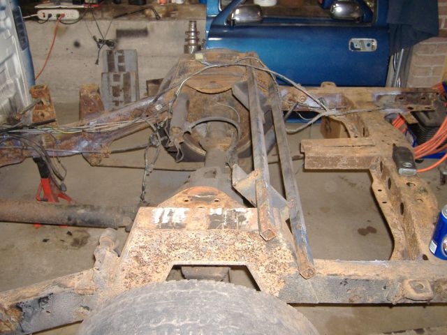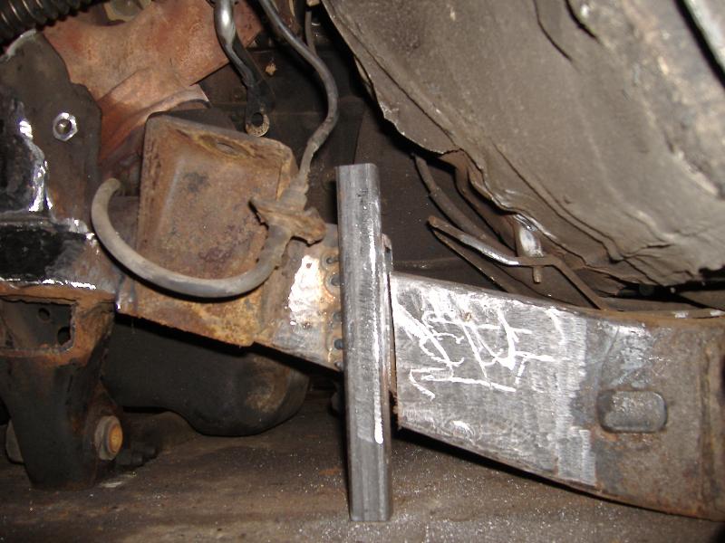 new tranny crossmember,some new steel in the rear to fix the rusted out parts of the frame, gas tank relocated to the rear between the frame rails,air tank mounted in the rear between the rails, z'd front clip and body dropped.