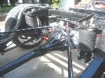 Belltech spindles,Gravity-Werx tri 4-link forward mounted,Firestone 9000 sleeve bags slightly forward of the axle,Energy suspension bushings,Doetsch shocks, & Quickior sway bars,CanDo c-notch,fender tubs front & rear, & a custom center cover,CanDo custom arms,Slam RE6 bags,& relocated shocks.