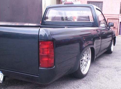 4 runner lights,grill,fenders 2wd bumper/valance-shaved fuel filler door,tailgate handle-roll pan -PPG green w/HOK blue metal flake paint&body - BODY PROS Garden Grove CA 4 sale