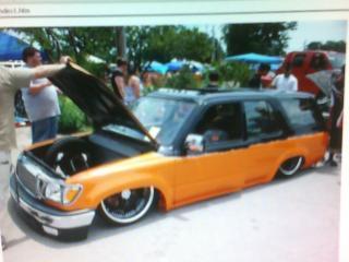 2002 TACOMA FRONT CLIP SECTIONED REAR BUMPER RESKINNED TAILGATE BODYLINE WRAPPED AROUND SHAVED -- TAILLIGHTS - DOOR HANDLES - ANTENNA - GAS DOOR - ROOF RACK - 3rd BRAKELIGHT - HOOD PISSERS - REAR WIPER ALL STEEL DOGLEGS IN REAR DOORS - PAINT PROVIDED BY R-M DIAMONT - PAINT APPLICATION BY BUTT-UHH SPRAYING - BILLET GRILLE PROVIDED BY PRECISION DESIGN