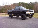 cranked torsion bars up front for 2 inches and put 4 inch lift shackles in the rear with PRO-COMP ES3000 shocks.gettin front pro comp es3000's SOON and steering stabalizer.