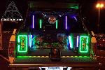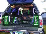 Alpine, Soundstream, Audio Control, 14 speakers 3400 watts, 3 Stinger batteries. Also sports 88 tubes of neon and 50 strobes for now.