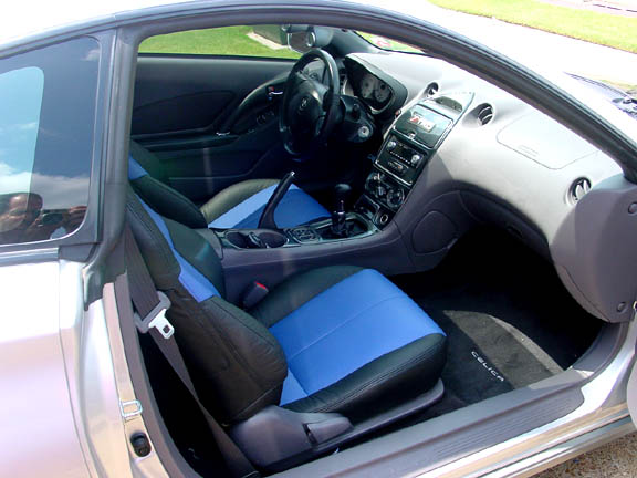 Katskin upholstery (black and blue leather), custom switch panel in ash tray, CF dash kit, ~10 neon tubes...
