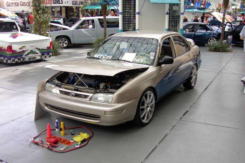 shaved door handles, hood squirters, trunk, trunk key hole, front corner lights. NEO body kit. custom paint using BMW blue and stock Beige with black pinstriping