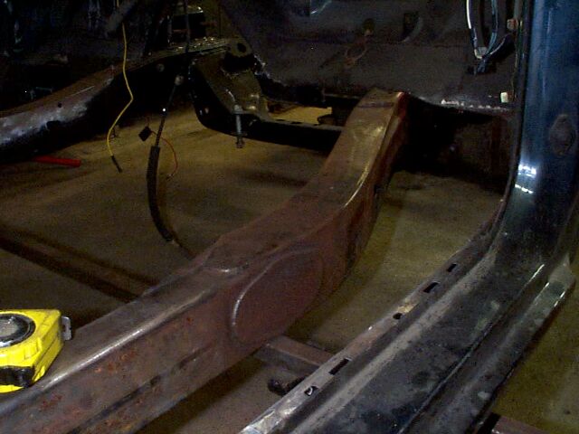 Stock floor gutted for new sheetmetal floor for stock floor body drop.