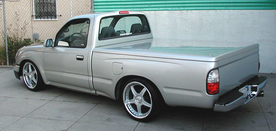 4runner chrome front bumper, chrome rear bumper, grill surround & door handles, Street Beat billet grill, Trenz billet antenna, VIS carbon fiber hood, shaved tailgate handle, euro tails, snuglid