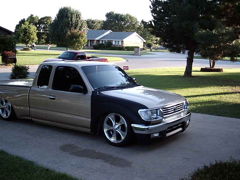 4x4 Front clip all factory toyota parts, Flared bedsides 2 inches on either side, Tonneau cover painted to match, Clear corner markers, turn signals and diamond headlight conversion.