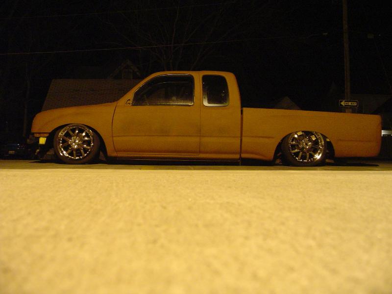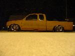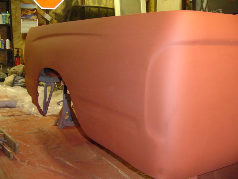 oxide red, shaved door handles, antenna, gas door, tail lights, skinned in rear with liscense plate in the roll pan, 2 10" leds in the skin