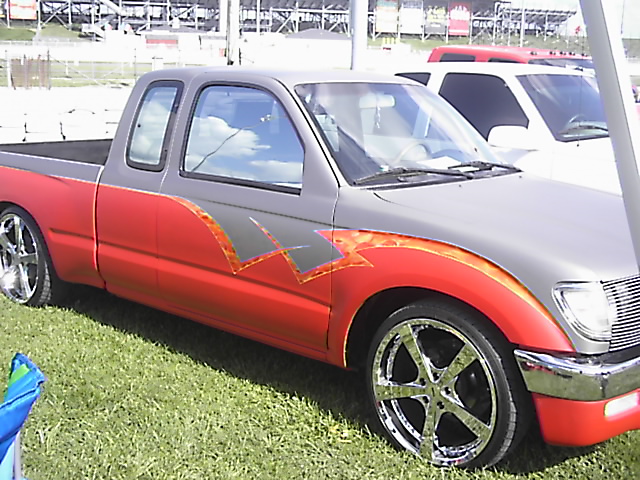 shaved door handles, mirrors, and third brake light. 4x4 fenders.shaved tailgate, rollpan