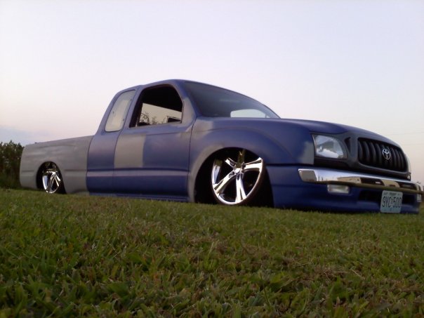 01 front end,3.5" traditional body drop,Tailgate skin,shaved gas door, shaved mirrors, shaved door handles, shaved tail lights, shaved 3rd brake light, shaved front corner markers,some sanded down flat blue and gray primer hope to have all one color soon.