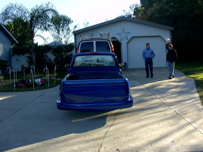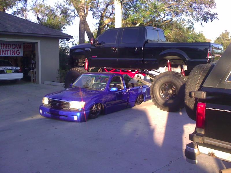 shaved bed, LED tails, bodydropped, custom one off hood, one off front bumper