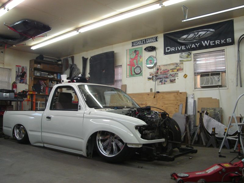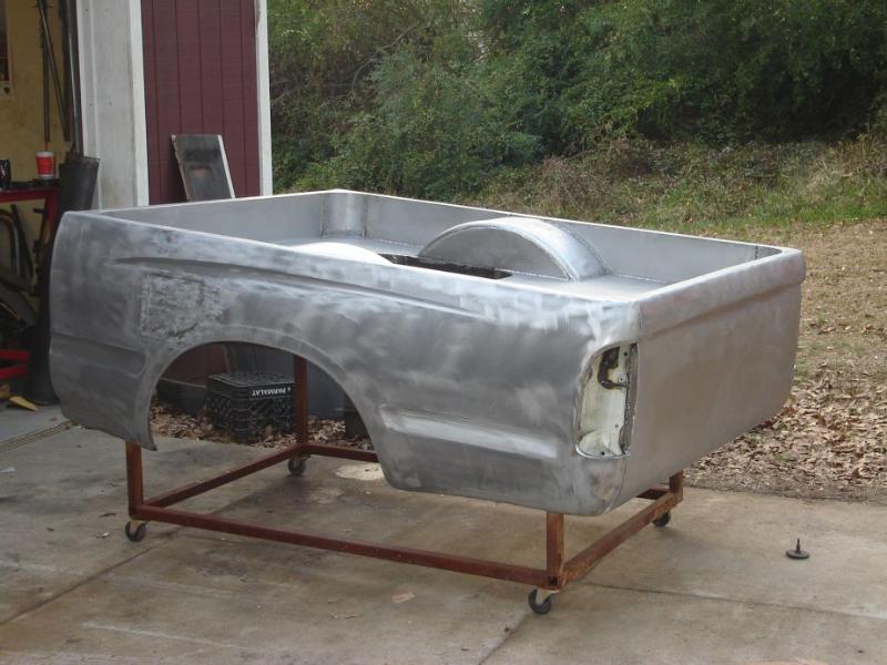 Sheetmetal bed, welded up tailgate, 4wd front sheetmetal, traditional 3.25" bodydrop, Primer, Hand-laid pinstripes by "Shakey BOB"
