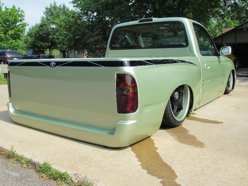 Lexus is 300 front end, custom cowl,grill, shortend bed, sheetmetal bed, molded 4runner rear bumper, rear shaved up, motor cycle helmet fuel door
