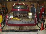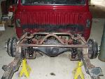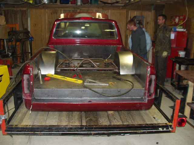 Hydraulic setup, 2 pumps, 10 switches, 8" cyclinders up front and 10" in the rear. Fabricated & boxed rear frame clip, rear end shortend 8"s, triangleated 4-link, complete smoothed and tubbed bed. Tubs fabbed up in the engine compartment.